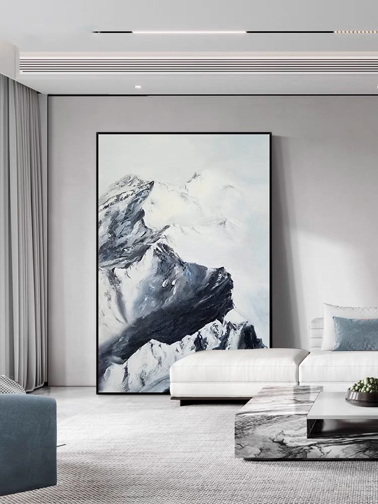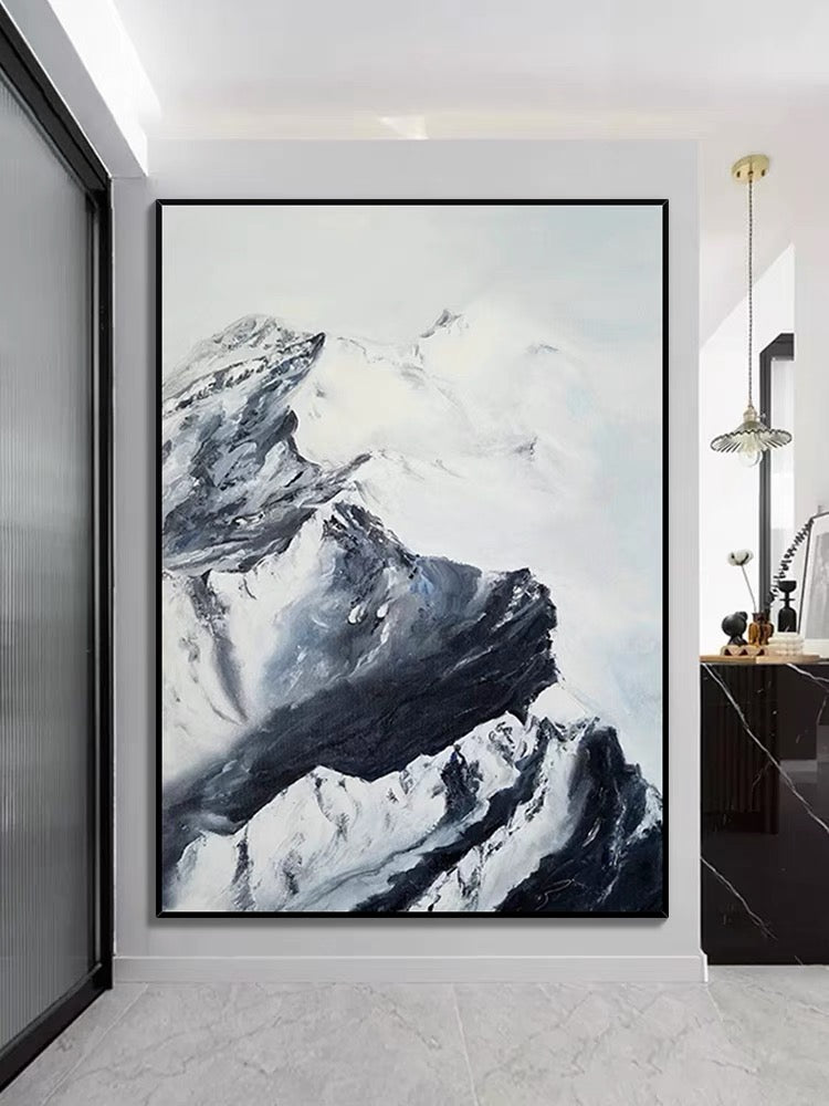 Pintura al óleo texturizada de montaña nevada en blanco y negro