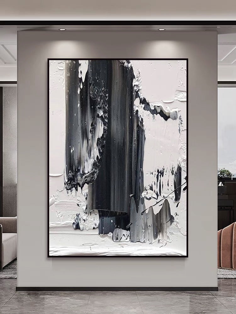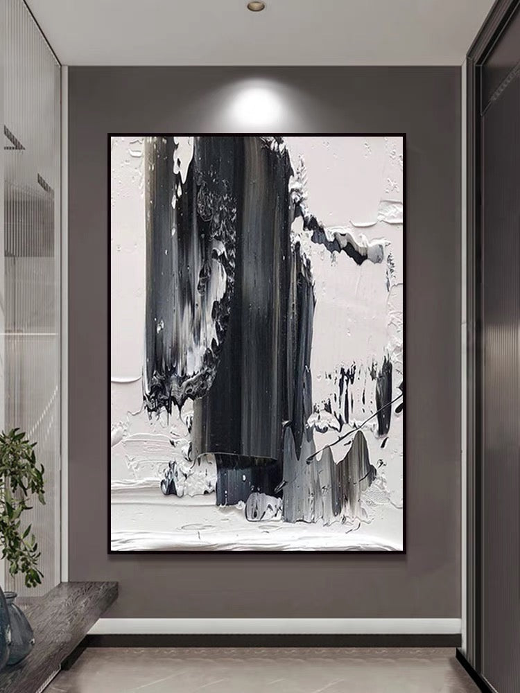 En la evocadora danza de contrastes, la "Pintura al óleo con textura de pinceladas en blanco y negro" se despliega como testimonio de la unión de la elegancia cruda y la textura refinada. El lienzo, adornado con pinceladas audaces en un esplendor monocromático, captura la esencia de la belleza orgánica de la naturaleza. La textura áspera pero lujosa evoca una riqueza táctil similar a los patrones intrincados que se encuentran en el mundo natural, creando una experiencia visual envolvente.