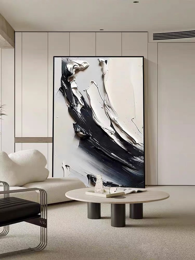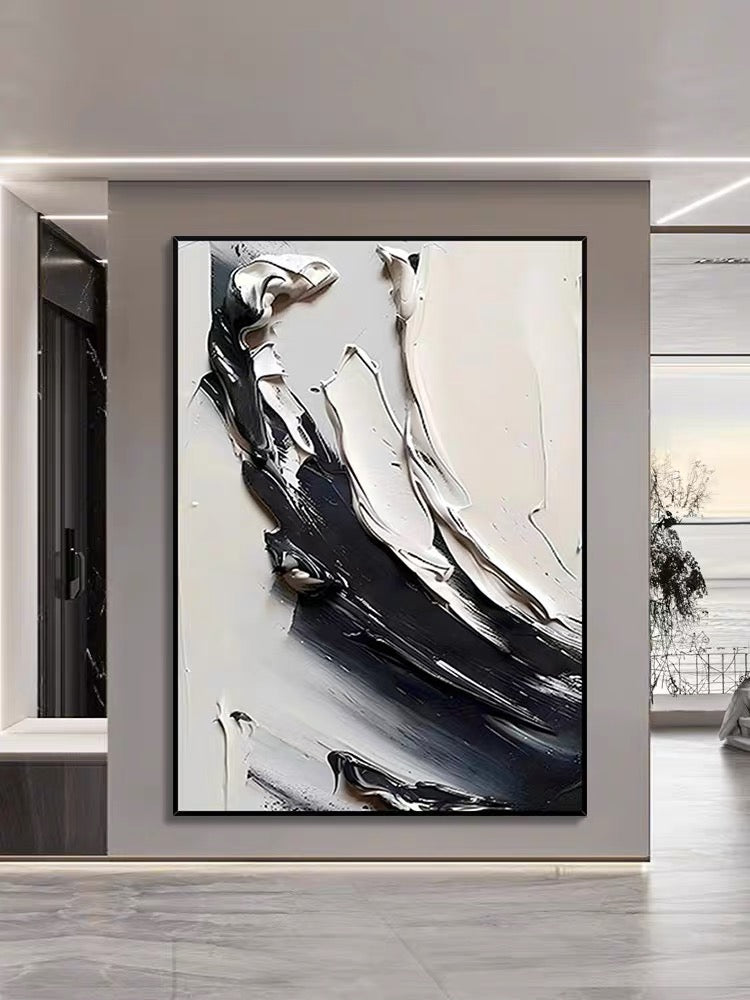 Peinture texturée de style noir et blanc luxueuxPeinture texturée de style noir et blanc luxueux