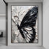 Black and White Butterfly Canvas Oil Painting with Texture Custom Size