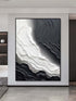 La tela strutturata dà vita alle onde increspate, alle loro creste e depressioni rese in sollievo dettagliato, creando un senso di profondità e movimento. Il litorale, con la sua sabbia granulare, contrasta bruscamente con la distesa scura e liscia d'acqua, ogni grano meticolosamente raffigurato per trasmettere la sensazione tattile di camminare a piedi nudi sulla spiaggia.