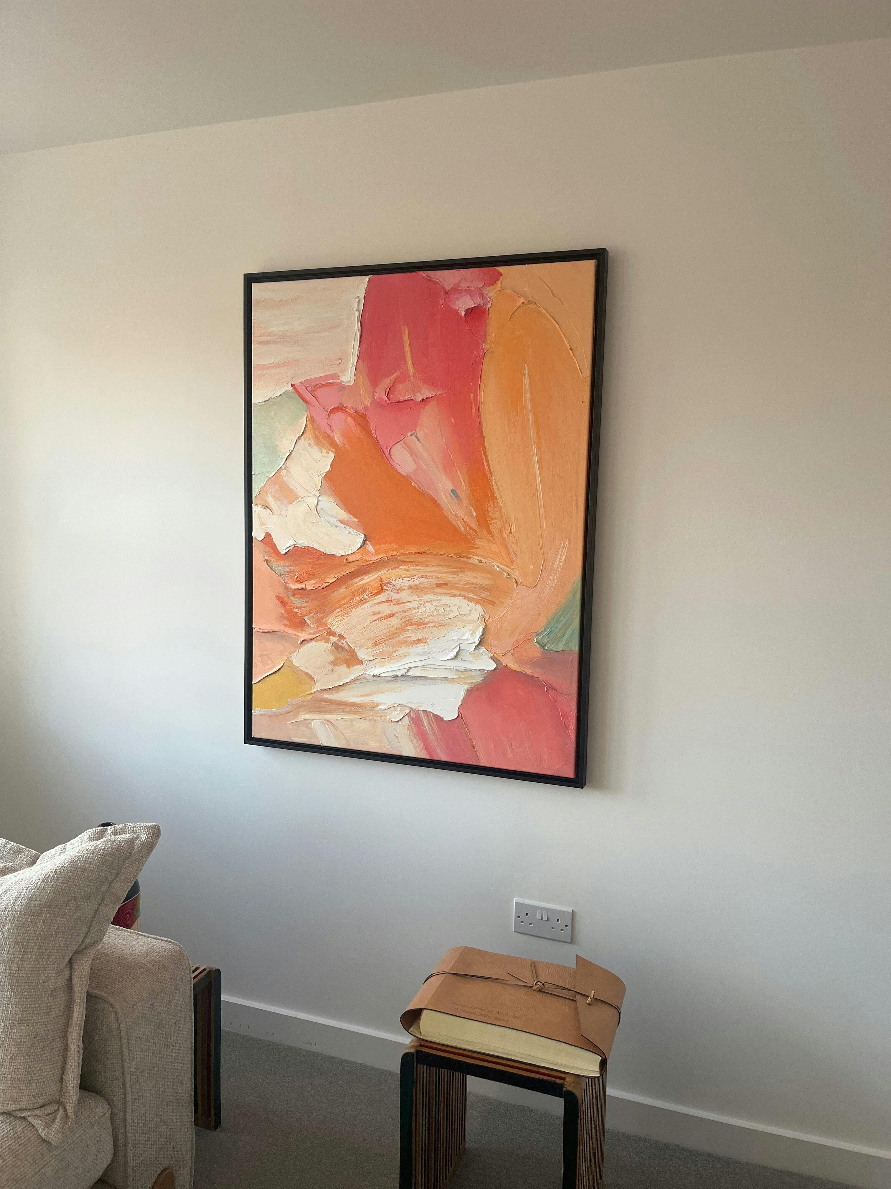 Thank you so much for your kind words! We’re delighted to hear that the 59” x 59” contemporary impressionistic piece has found its place in your new home. The bold colors and statement-making style sound like a perfect fit, and we’re thrilled you’re enjoying it. We also truly appreciate your recognition of our communication and service—it means a lot to our team.